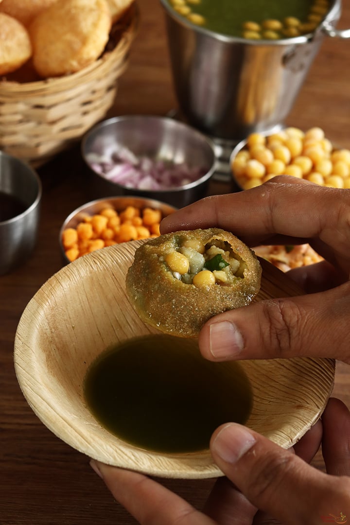 - Add chopped onion, sprinkle chat masala powder and coriander leaves.