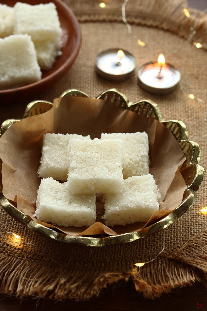 - Coconut - Fresh grated coconut or chopped small coconut bits are recommended for this recipe. Some of the coconuts tastes dry and are not juicy, so choose the one which is more moist and tasty.