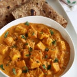 There are many variations of paneer curry which you can make at home easily. Some recipes use cream, some uses cashew paste, and some even add yogurt. This recipe uses coconut milk which makes it lighter and gives little different taste compared to regular paneer gravies. It comes together fast and it tastes good even after few hours also.