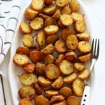 I love to use baby potatoes cut into half which is best for oven roasting. However you can use yukon gold or russet potatoes too.