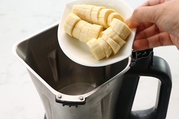 1.To a mixer jar add 1 long banana cut into slices.