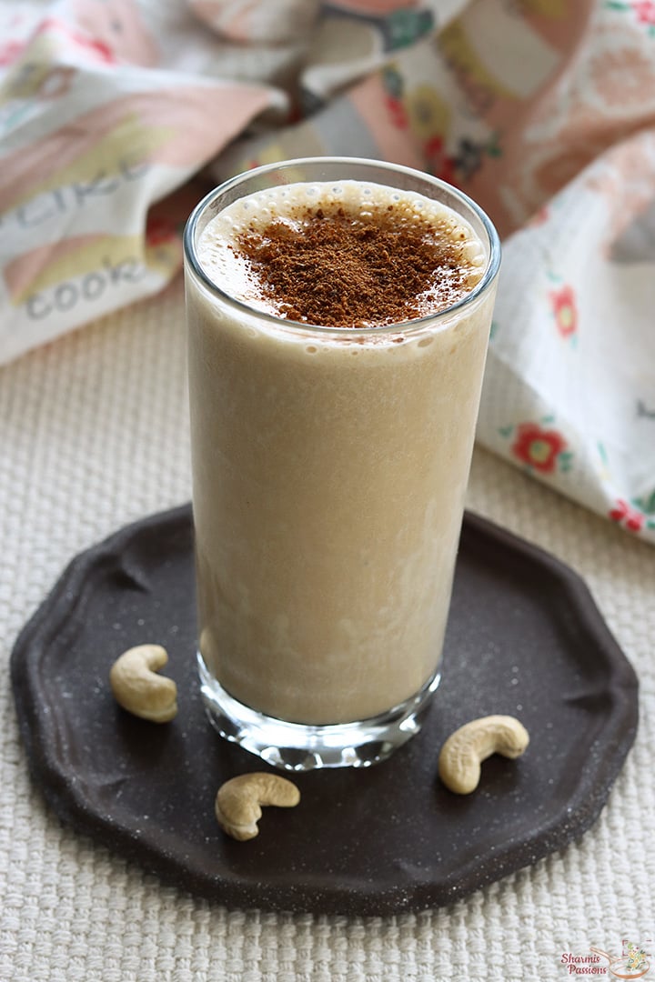 Mostly frozen milk is used which gives that creamy body. Banana, cashews and boost makes it more filling and tasty. It does not need many ingredients also. There are many variations to this shake but this version I have shared is the classic one served in many shops in Kerala.
